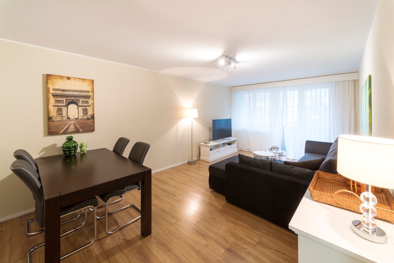 Neben einer individuellen und liebevoll gestalteten Einrichtung in verschiedenen Stilrichtungen erwartet Sie in allen Wohnungen ein Wohnbereich mit Esstisch, eine moderne Küche, ein Schlafbereich mit komfortablem Doppelbett, ein Kleiderschrank mit Bügeln und ein stilvolles Badezimmer mit Dusche oder Badewanne. Zudem verfügen die meisten Apartments über einen großzügigen Balkon oder eine Terrasse.